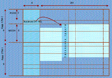 Указатели H1, H2, H3 задают положение начала виртуального контейнера VC-4 или трех виртуальных контейнеров VC-3 относительно поля указателей.