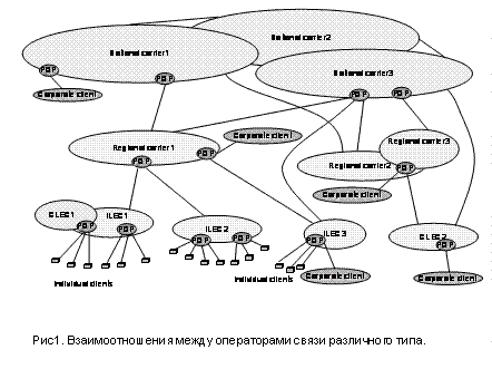 Рис. 1. Взаимоотношения между операторами связи различного типа