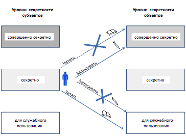 субъекту и каждому объекту назначаются собственные уровни секретности. Уровни