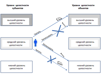 уровнем целостности, рискует «испортить» данные своего уровня, сделать их менее
